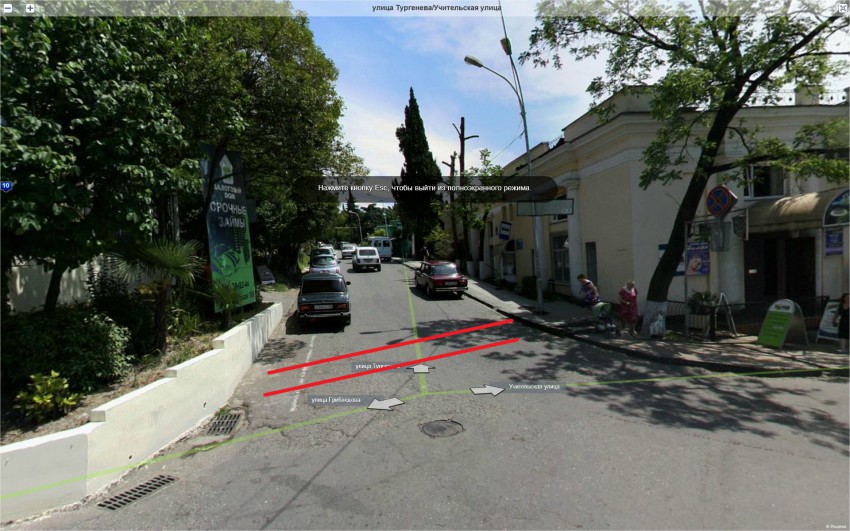 1). Если идти от остановки «Плеханова» в направлении Дагомыса к остановке «Династия», то с правой стороны улицы Виноградной тротуар отсутствует совсем до самой остановки «Династия».