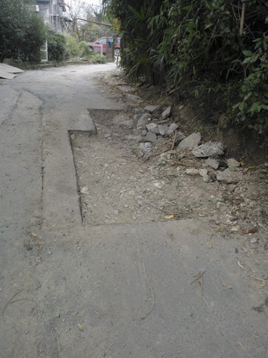 — «тротуар с перилами» повис над оврагом с глубиной до трёх метров, а перила разрушены.