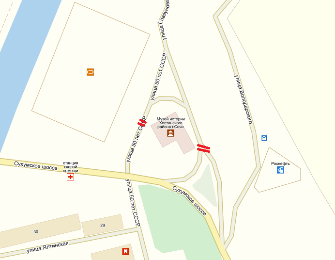 1) Хоста 50 лет СССР напротив дома 25. Яму уже 3 раза делали все бестолку.