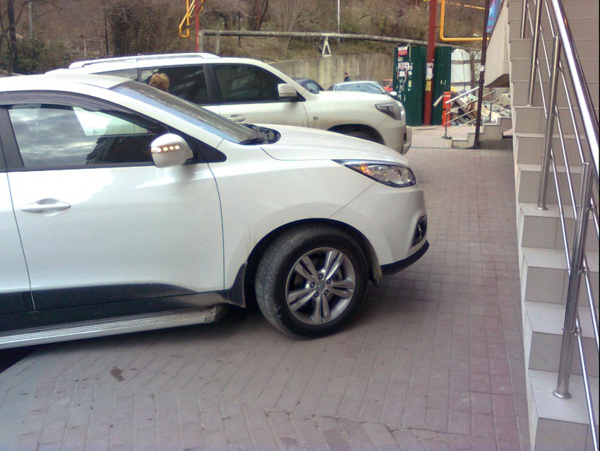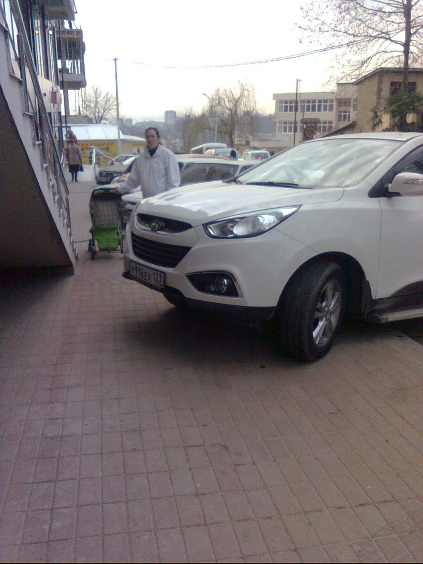 Водитель, как потом выяснилось, дамочка- блондинка ( ничего не имею против цвета волос), просто поставила свою бибику так, как ей было удобно, а то что с коляской просто пришлось обходить по дороге, ее мало волновало!