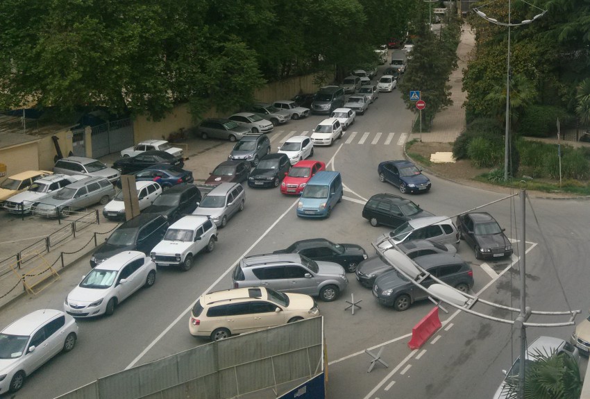 Народ в правой полосе думает, что стоит в пробке… ибо знаков нет, сигналят, выходят из машин, ругаются. А там просто припаркованные %)