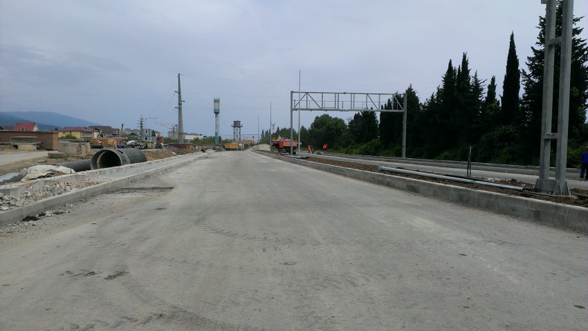 Заехал посмотреть как строится дорога Адлер-Весёлое. Всё как обычно, половина немногочисленных строителей создаёт рабочий вид. А самое интересное, что четырех полосная дорога упирается в забор. Спросил у строителей чей это участок, никто ничего не знает. Не известно успеют ли к Олимпиаде. Извиняюсь за качество фото, снимал на телефон.