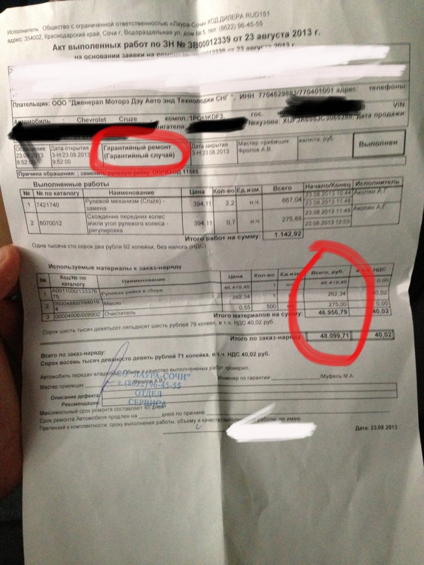 если бы не по гарантии — попал бы на тысяч 70 рублей