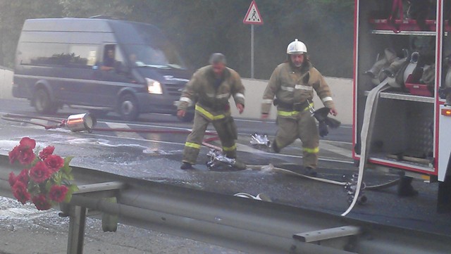 Проезжающие водители помогали кто чем мог. А могли помочь только огнетушителями.