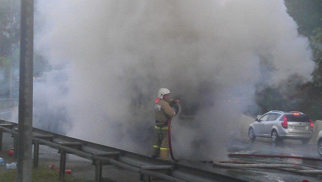 Причина пожара — короткое замыкание в электрооборудовании. Совет от пожарных и от меня тоже: В случае появления дыма, вызванного коротким замыканием (да и не только) срочно отключите аккумулятор! В данном случае это не было сделано то ли по запарке, то ли огонь не дал добраться до места!