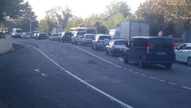 Пробка собралась небольшая, может быть чуть больше сотни метров.