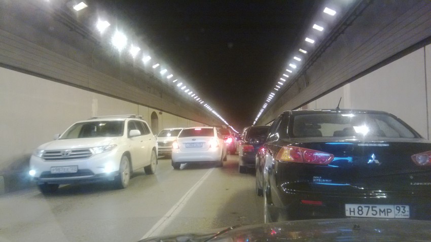 Вчера с обеда до вечера пришлось четыре раза съездить в Адлер. Делиться впечатлениями не буду, потому что приличных слов — нет. Дорога, в общей сложности, заняла — семь часов. Три раза ехала по Объездной, один — по Курортному проспекту. Днём, на Объездной, в тоннеле, что перед Мацестинским тоннелем (не знаю как он называется, там где есть съезд на Раздольную) тупо простояли больше часа…