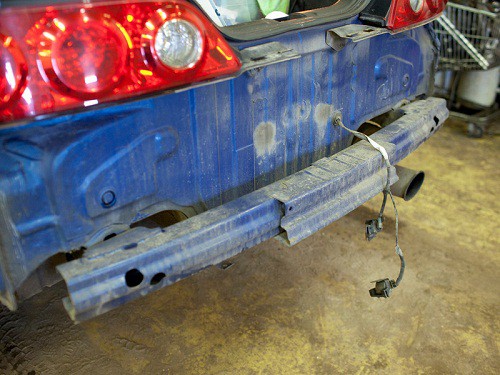 1. Владельцам некоторых машин достаточно загнать машину на подъемник, нам же пришлось снимать задний бампер.