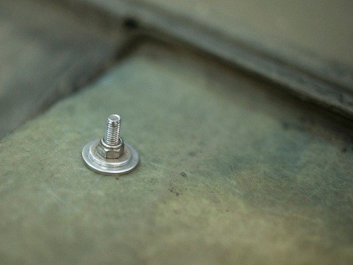 6. Ставим шайбы и закручиваем гайку с обратной стороны. Можно установить шайбы любого размера — но даже 12-14 мм будет достаточно для того, чтобы снять номер было непросто.