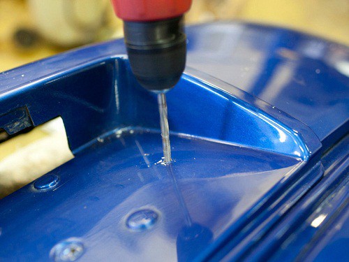 Основная проблема всех описанных выше решений — в том, что номер или рамку ничто не держит изнутри, поэтому ее достаточно легко вырвать «с мясом» из бампера или крышки багажника. В нашем случае, крепить номер и рамку нужно насквозь, просверлив (увы и ах!) соответствующую деталь. Впрочем, эстетика от этого не страдает – отверстий видно не будет, а если речь идет о металлической детали, отверстие можно обработать антикоррозийной пастой.