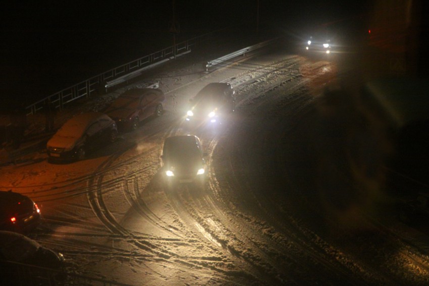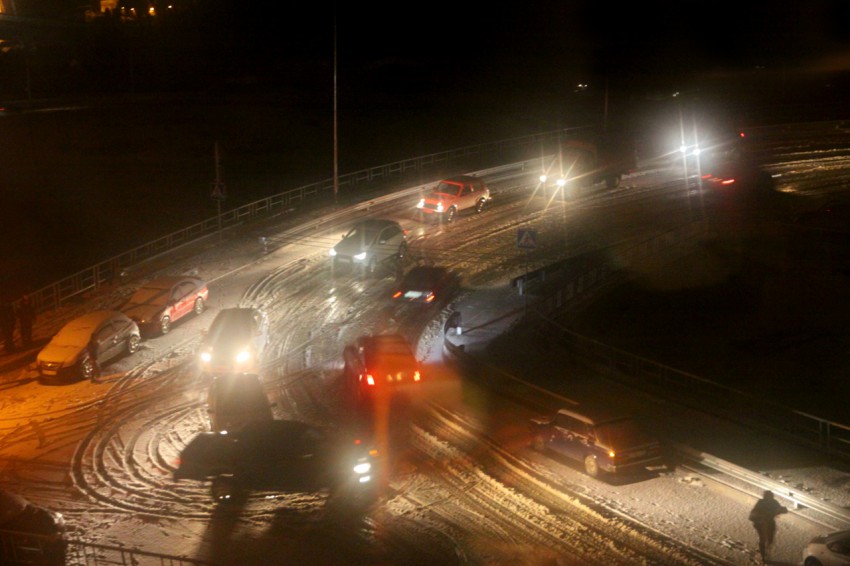 По дороге на КП вечером обледенение только на мостах, и что 40 км асфальт цепями бить?