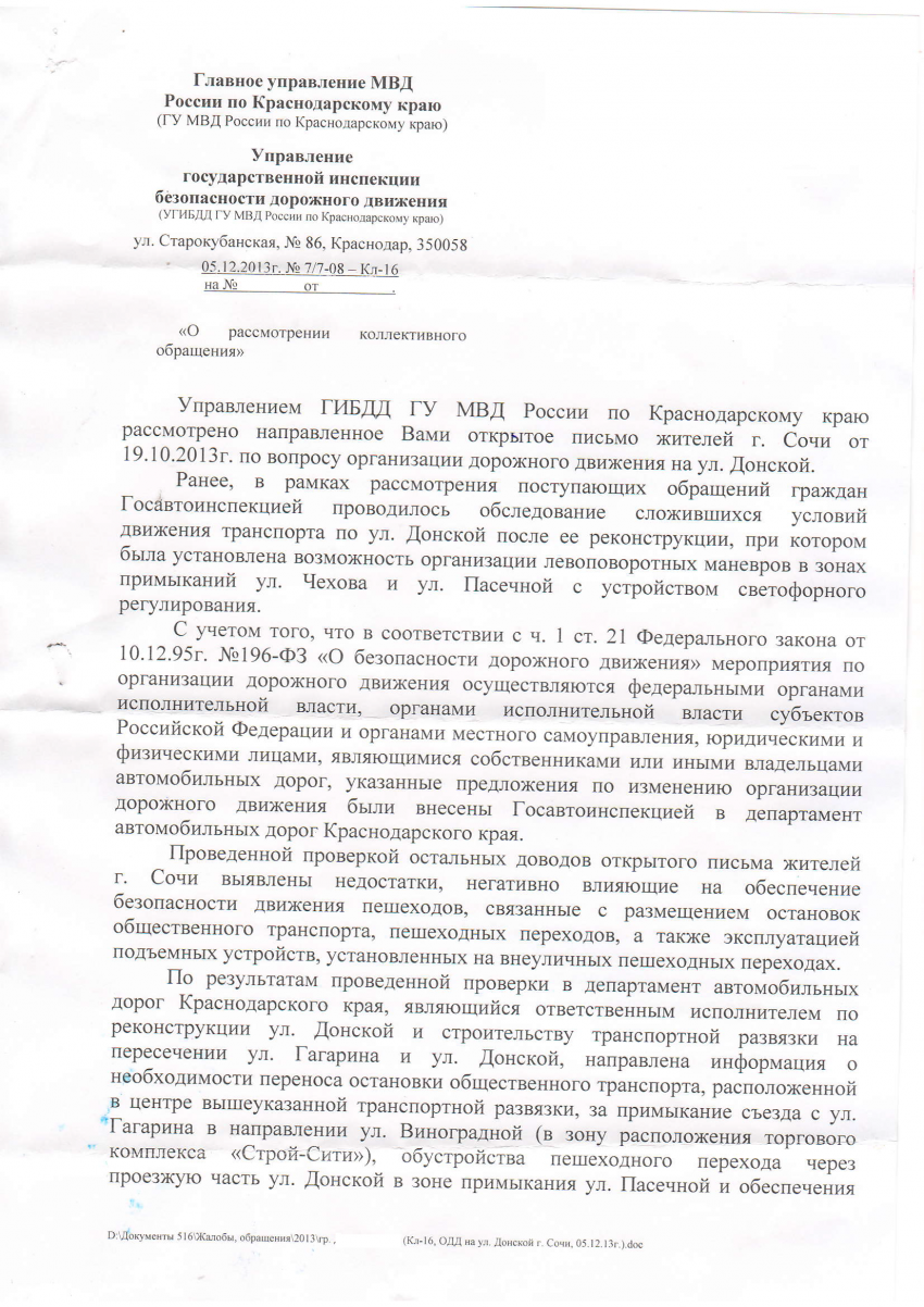 Три раза перечитала 2 и 3 абзац — про остановку, пешеходный переход в р-не выезда Пасечной и подъемные устройства. Про левый поворот — не вижу… Указанные предложения по изменению внесены — всё? Сдается мне, что это красиво составленная, но все же отписка… Сделают минимум, то то считают допустимым, чтобы народ успокоился, а по существу проблемы?