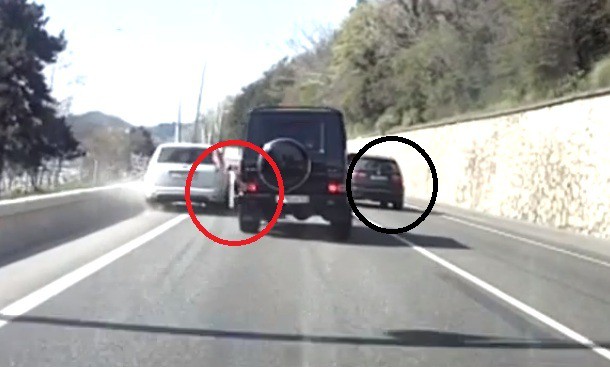 — гелендваген, въехал в жопу красному, стоявшему со знаком аварийной остановки, и отрезал дорогу фокусу