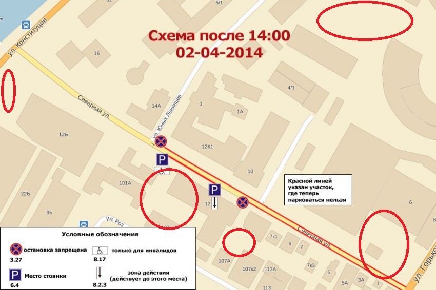 Вероятно демонтаж знака 3.27 „остановка запрещена“ перед зданием Северная, 12 — безграмотная попытка привести в правовое поле дислокацию установленных знаков.