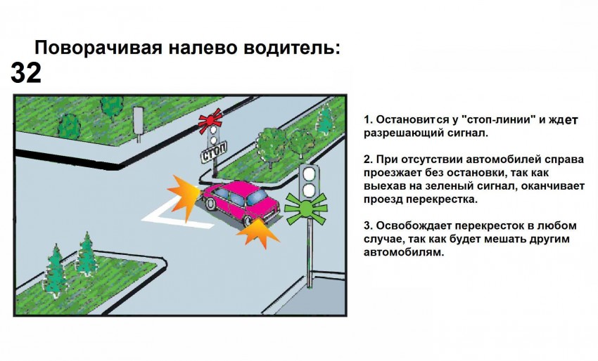 1. При повороте вы должны пропустить пешеходов при любом сигнале светофора.