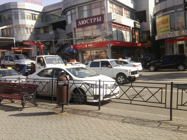 Вчера знакомой родственник у «Мюнхена» (напротив Морпорта) на пятнадцать минут оставил машину, зайдя в магазин, чтобы купить шлёпки. Когда вышел, то увидел отъезжающий эвакуатор, увозящий его машину. Погнался. Догнал. Выкупил за 1000 руб. Сгрузили. Уехал.