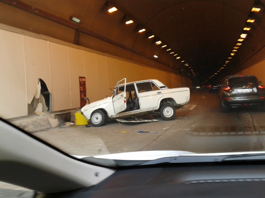 Проезжали там сегодня, простояли в пробке минут 40… на въезде в тоннель 2 или 3 экипажа ДПС в растерянными глазами, абсолютно не в состоянии регулировать обстановку на дороге… в тоннеле в хлам разбитая машина… в пассажирском окне голая пятка водителя, на асфальте мертвое тело, слегка прикрытое какой-то грязной тряпкой!!!