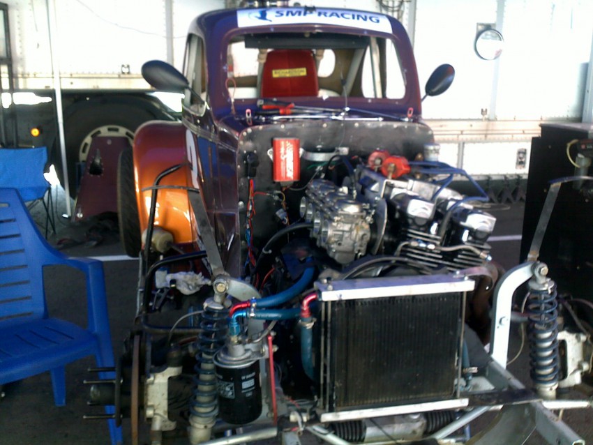 ,.А вот это машина гоночного класса «Легенд». Своего рода сопутствующий «цирк», скрашивающий перерывы между гонками. Машины внешне напоминают машины «ганстеров» 30-х годов. Сами по себе маленькие. Пилот еле-еле помещается в кокпите тем не менее по настоящему гоночной машины, построенной вокруг сваренной рамы и движимой 1200 кубовым мотоциклетным двигателем. Машинка по хорошему вёрткая и шустрая. Своим появлением гонки этих машин всегда вызывают неподдельный интерес благодарной публики.,