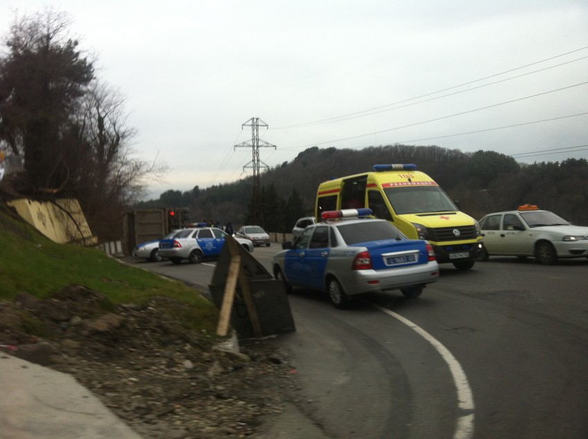 Проезжали только что. Радует что самосвал никого не подмял под себя. Судя по всему никто серьезно не пострадал. Похоже на то что слетел под откос на повороте. Причины не понятны. Много полиции. Судя по всему будет не слабая пробка. Внимание, сильно течет солярка по дороге!
