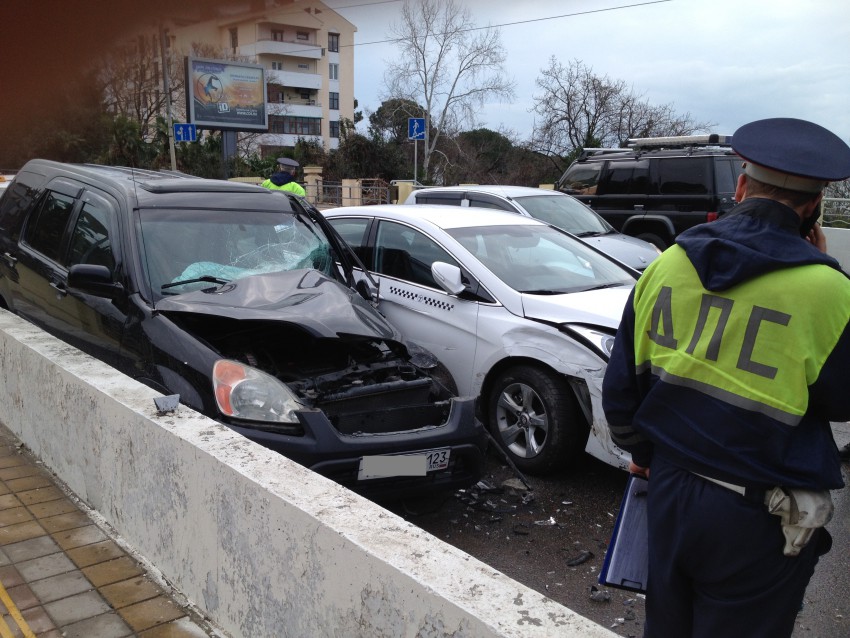 Автобус едет по средней полосе. Видит, что на встречку вылетает такси, пытаясь обогнать Хонду. Водитель автобуса уходит влево (т.к. справа полоса занята), бьёт Хонду. Но одновременно с автобусом таксист тоже возвращается на свою полосу и там они с автобусом встречаются