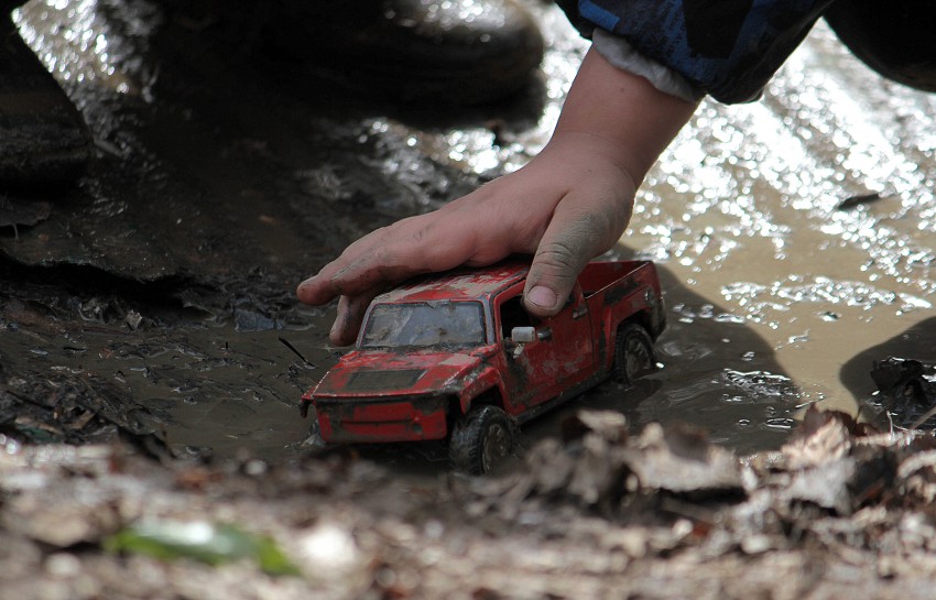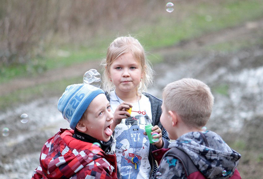 И пока папы и мамы с горящими глазами и счастливыми лицами преодолевают трассу, дети болеют за них, играют и счастливо используют весеннюю грязь.)