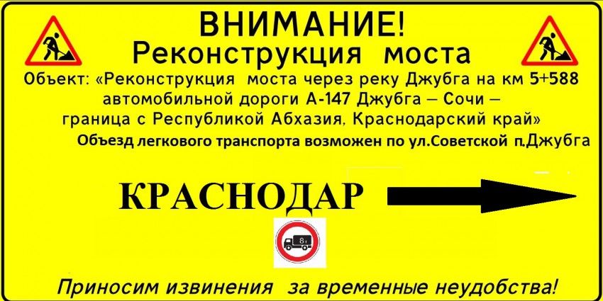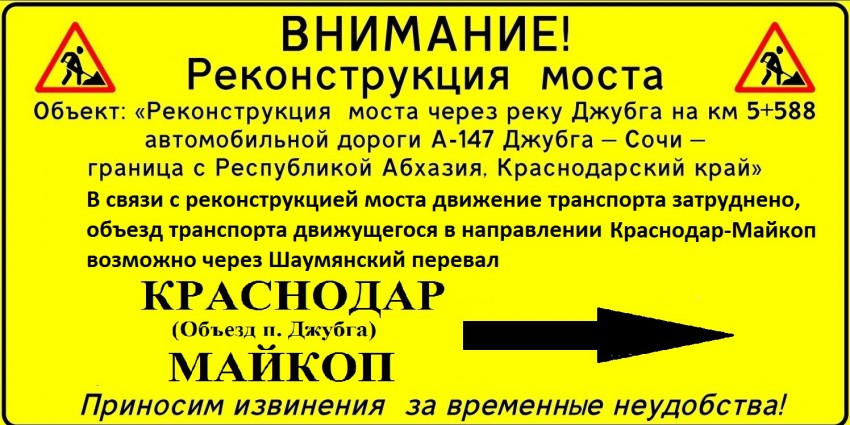 ФКУ Упрдор «Черноморье» информирует водителей легкового и грузового транспорта, планирующих поездки по автомобильной дороге общего пользования федерального значения А147 (М27) «Джубга-Сочи»: в связи с необходимостью выполнения завершающих этапов работ и окончанием высокого курортного сезона 1 сентября 2015 года произведен ввод режима реверсивного движения на 4-х участках, где ведутся работы по реконструкции мостов через реки Детляжка и Асахай (р-н пос. Детляжка), Матросская Щель (р-н пос. Головинка) в Лазаревском районе города-курорта Сочи, а также через реку Джубга (пос. Джубга) в Туапсинском районе Краснодарского края.