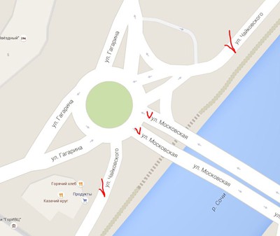 Всё время пьяным за рулём ездим. Справа Московская — Чайковского раз, а слева Московская — Чайковского два — и того два перекрёстка.