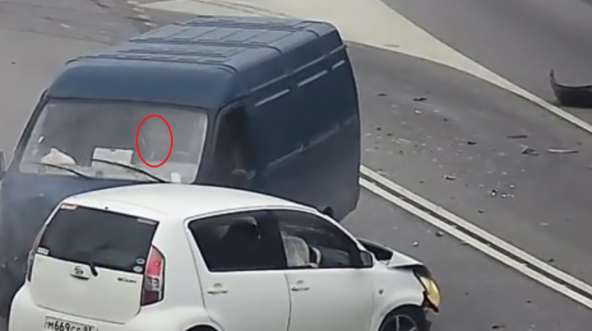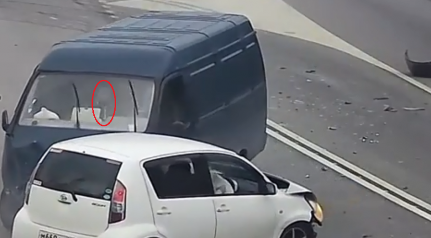 Смотрим сначала. 22-я секунда. Газель только что второй раз таранит авто. Машина все еще катится… Вижу тень головы и только что появившуюся из-за крышки верхнего бардачка полоску молнии. Движении полоски молнии от центра салона к водительскому месту