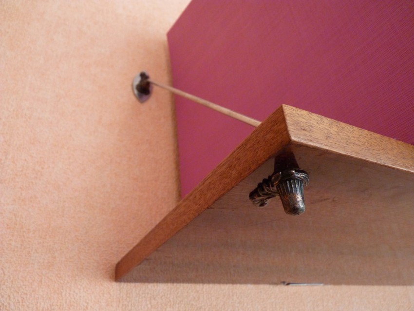 Потом крепление. Тут для творчества нет предела. В моём случае использованы отшлифованные электроды из нержавейки (прутки-держатели на фото), нержавейка листовая из которой вырубались уже крепления к стене, и боковые фигурные крепления от ручек для мебели, как декоративное прикрытие соединений различных: