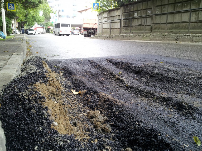 По всей видимости, не по технологии сделали основание, вот и итог. Вообще дорожные латки в Сочи, с особым вкусом наши подрядчики делают, с задело на очень скорое будущее. У нас на Светлане, на улице Верхняя Лысая гора сделали… месяца не прошло, можно опять латать ((((((