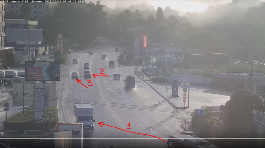Ориентир один всё ещё остаётся основным «раздражителем». Заметим, что по отношению к первому фото расстояние между первым ориентиром и вторым не изменилось, а мало того, второй ориентир за это время не сильно приблизился к автобусу. И только здесь на всю ситуацию уже серьёзным образом начинает влиять третий «раздражитель». Но даже в этой ситуации он не позволяет полностью поменять решения, а лишь вносит коррективы в виде того, что придётся ещё и его пропустить без всяких последствий, т.к. его скорость позволит ему почти в плотную приблизиться к «будке» а расстояние и скорость остальных не предвещает ничего серьёзного. Но, как говориться — ща! Дурдом что, зря старается? И продукт соответствующего предприятия делает то, что и должен — ведёт себя как последний дебил и создаёт всем «весёлое» настроение. Там ещё можно много, даже без более подробного разбора, рассуждать. Но думаю с сегодняшним контингентом из сферы «автолюбительства» — неблагодарное дело. Опыт огромен в реале.