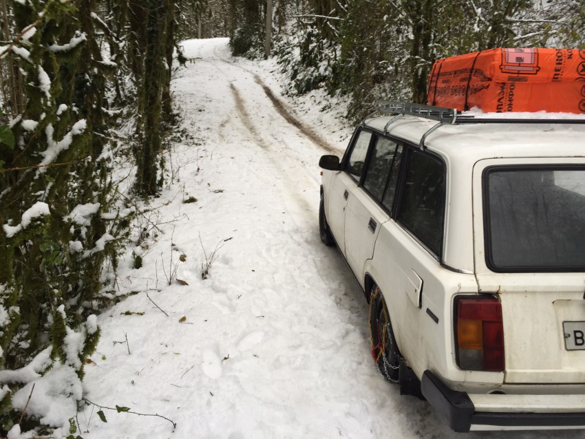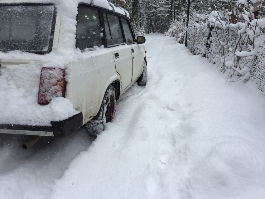 Когда выпадает снег, никакой другой вариант на соболевке не позволяет выехать (кроме полного привода разве что). На цепях по снегу/льду конечно хорошо идет, но стоит выехать на асфальт — жуткая тряска начинается. Оперативно же снять/одеть их в реальной жизни затруднительно.