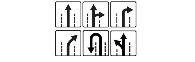 Интересны также новые дорожные знаки 5.36 указывающие направление движения по полосам следующего перекрестка, если между перекрестками небольшое расстояние и необходимо заранее уведомить участников движения для заблаговременного перестроения.