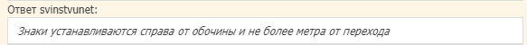 Знаки на размеченном пешеходном переходе устанавливают на расстоянии не более 1 м от границы перехода.