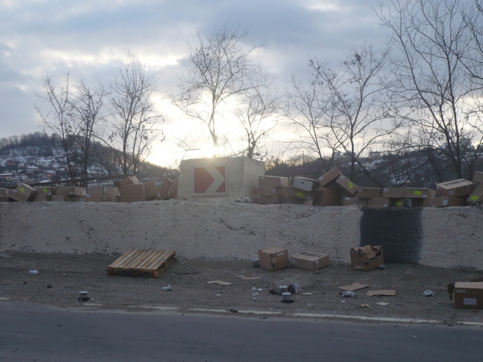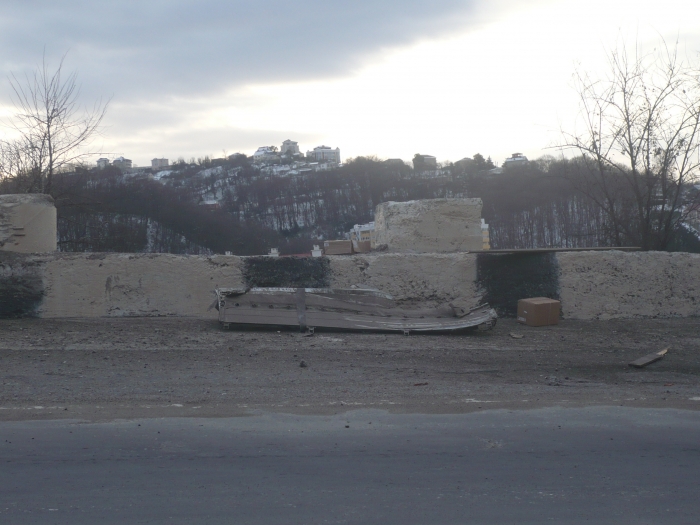 мда еще раз извините за соседний фоторепорт — там видно подорге выше после поворота пятно гололёда и длинный скользкий след… ( может и перегрел колодки — но наврятли, судя по грузу относительно лёгкий грузовик, скорее подскользнулся)…