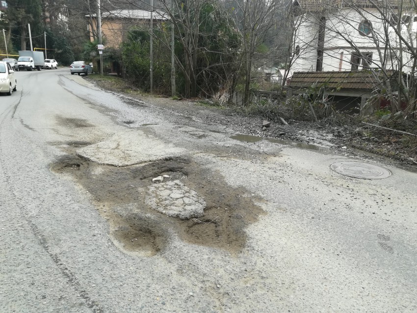 Яма рядом с санаторием прогресс в Хосте, дорога на Кудэпсту.