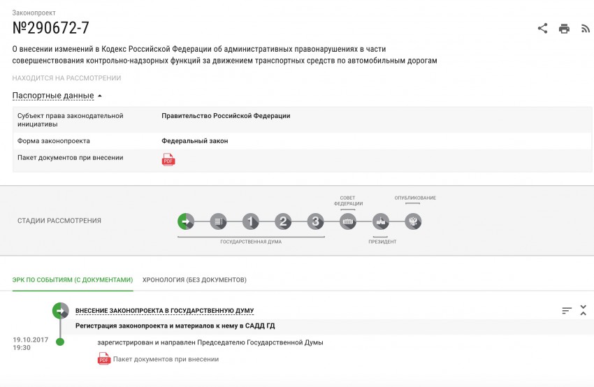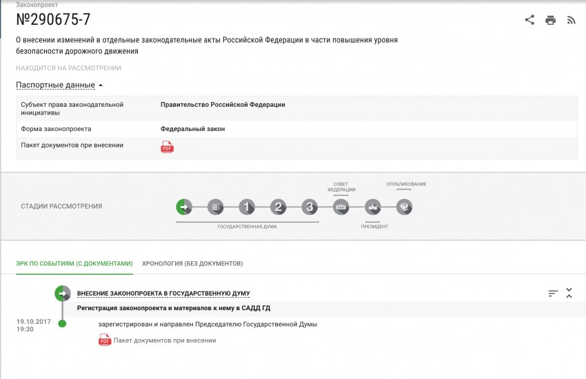 В настоящий момент законопроект зарегистрирован в Государственной дума РФ за номером 291354-7