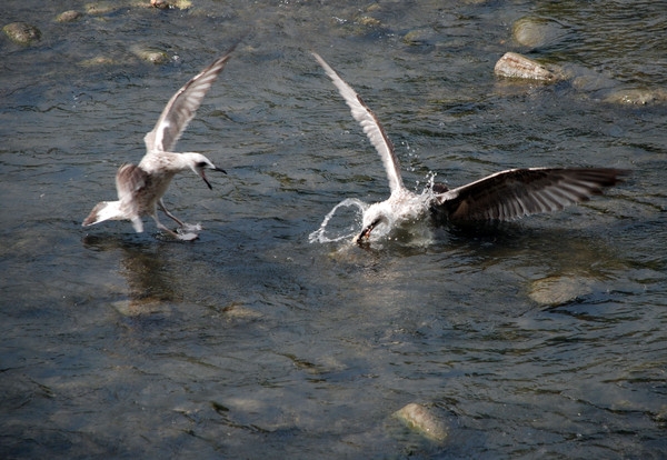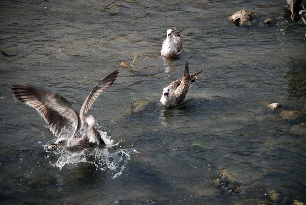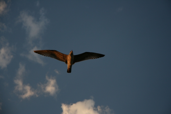 Толпа дико орущих чаек начинала летать вдоль окна, в котором засел «кормилец», по кругу с достаточно широким диаметром. При каждом приближении к окну темп полета резко замедлялся, а некоторые, особо наглые или голодные, умудрялись даже зависать напротив, отчаянно выпучив глаза и крича так, будто это последняя в их жизни возможность пообедать. Высшим пилотажем считалось закинуть кусок еды прямо в рот клюв чайке. Та, поймав пищу, отлетала, чтобы поскорее проглотить и вернуться за новым кусочком.