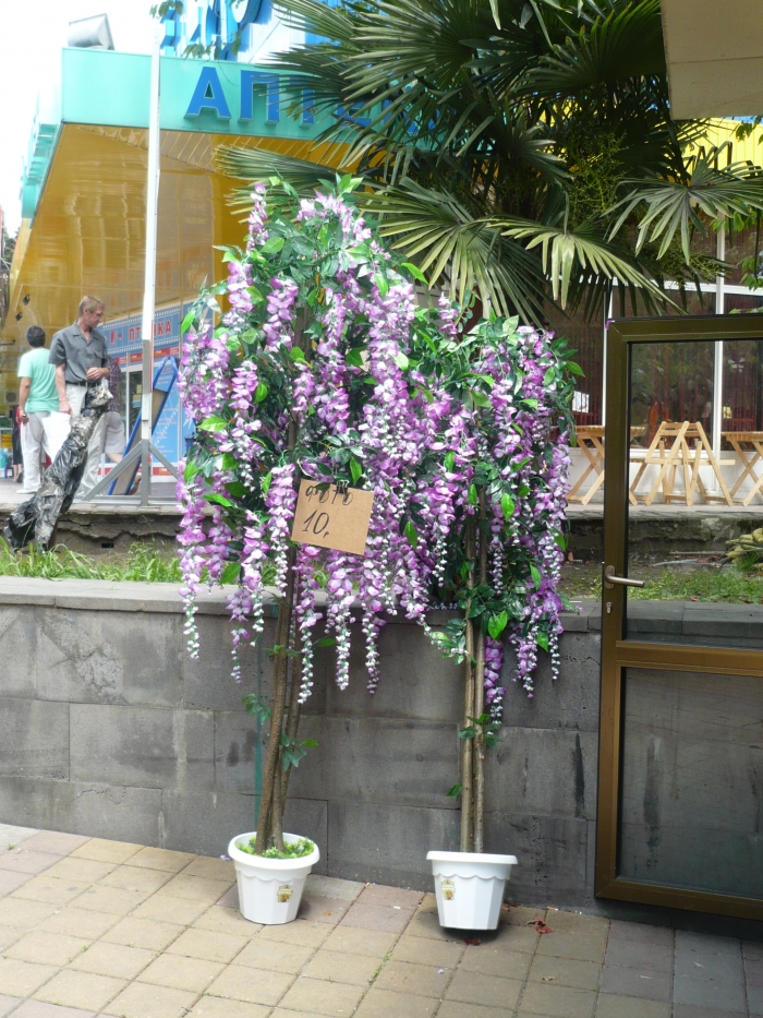 За свою жизнь я видела многое: фотографии с попугаями, обезьянами, змеями и прочей экзотикой… восковыми фигурами знаменитых людей, но в Сочи, в середине июня… фотография с искусственными цветами?