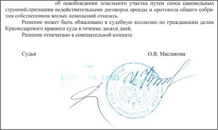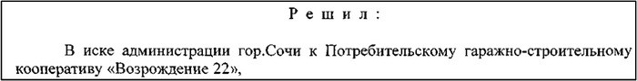 Считаю, что кооперативу очень повезло с судьей – она в соответствии с принципом – «все равны перед законом и судом» и в соответствии с законом рассмотрела дело.