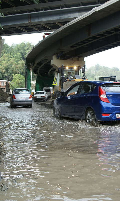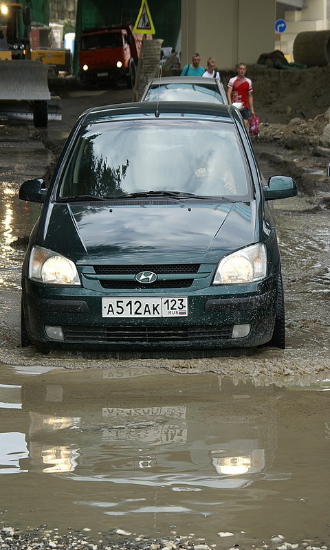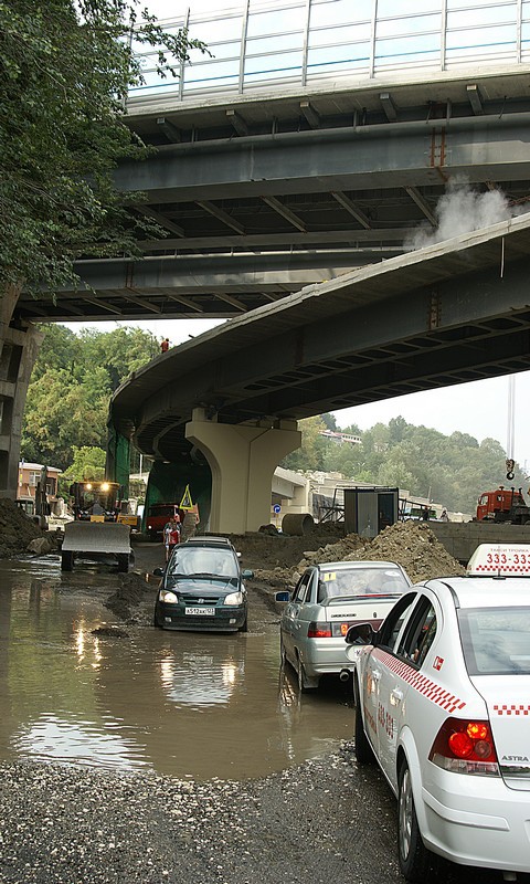 Не пугайтесь, я не хочу разбередить все еще кровоточащие раны несчастного Крымска. Это кадры не оттуда, хотя таких мы видели множество из утопленного по вине нерадивых администраторов кубанского города. Нет, в этом случае – никакой стихии. Это – олимпийская стройка Сочи. Что ни на есть рядовая — развязка ул. им. 20-й горно-стрелковой дивизии на объездную дорогу в селе Раздольном. Полтора года вот так, утопая в грязевой луже, теряя подвески в ямах и ухабах, идет транспорт под строящимся ударными темпами мостом. Для своего удобства строители засыпали ливневые канавы, воду из разрушенного водопровода пустили на дорогу. Они нас, ежедневно пробирающихся здесь туда и сюда вплавь, в упор не видят, и им дела нет до нас. Зато я, проезжая каждый день этот отрезок моего пути в сторону центра, имею возможность поразмышлять, почему все так несуразно, не профессионально у них получается, почему они за своими интересами совершенно не видят моих? Ведь цена вопроса – всего машина щебенки! И дело тут не только в этой злосчастной дороге. Объяснение её плачевному состоянию можно найти – она далеко все же от Курортного проспекта и кортежей с вереницей мигалок, а у самих строителей пока нет достаточной культуры в работе. Нет вожжей, по крайней мере, на этом участке, которые бы понуждали работать хорошо. А сами не могут! Они – гастарбайтеры! Я их даже где-то понимаю, тех, кто с лопатами, за баранками грузовиков и рычагами бульдозеров. Какое им дело до нас сочинцев? Их завтра здесь не будет, они пойдут искать свою долю туда, где будет им лучше. Но возникает вопрос: а где хозяева этой стройки, где городская и прочая власть? Они что, тоже гастарбайтеры? И им тоже наплевать, как живем мы, кого называют не очень уважительно «простые сочинцы»?