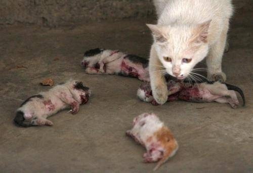 грудь сокращалась открытая, выставляя сердце. Согласно наблюдению журналиста, пулевые отверстия на телах котят были вызваны металлическим, игрушечным оружием. Считают, что, ночью, кто-то сначала избил котят, чтобы они были неспособны убежать, а потом продолжал над ними издеваться\калечить до смерти. И самое ужасное, что этот выродок специально клал их около кошки-матери. Бедная продолжала облизывать своих деток, надеясь, что вылечит их..»