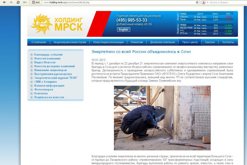 источник — оф.сайт Холдинга МСРК — основного акционера ОАО «КубаньЭнерго»