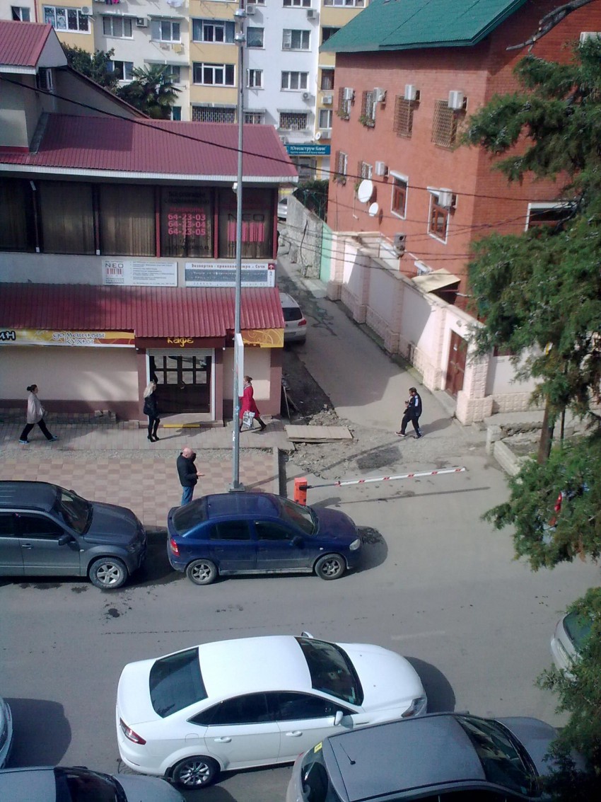 Тут невольно вспоминается обстановка в центре около администрации города. Вот кусочек (то, что осталось для проезда) улицы Островского.