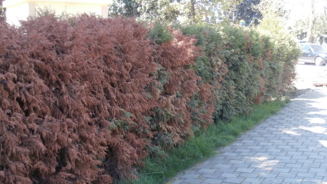 Долго там не появлялся и вот что увидел на днях. Сначала подумал — может такой креативный цвет листьев? Подошел потрогал — сухие.