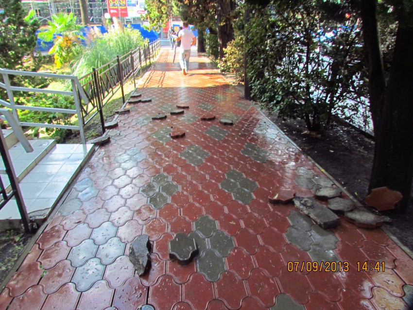 В Хосте, на улице Ялтинской, а в частности на набережной реки, так плохо уложена брусчатка что слов нет, после дождя страшно идти все криво и косо. А еще на улице 50 лет СССР после ремонта так положили брущатку, что слов нет, провалы, волны и т.д. Если кто из администрации хостинского района читает то просьба отреагировать!!!