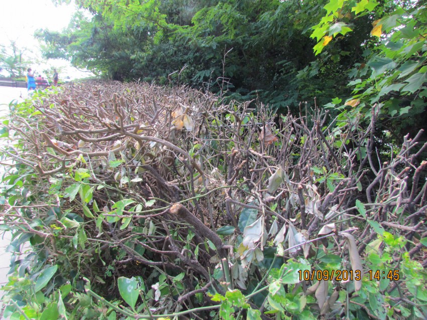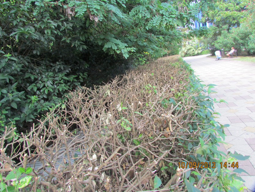 На набережной у гостиницы «Приморская» какая-то косорукая особь произвела обрезку кустов