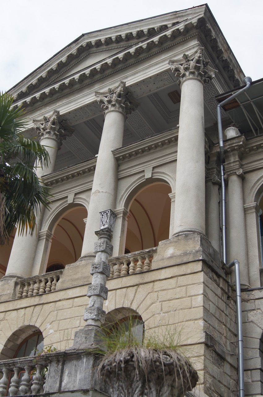 Санаторий-дворец из киносказок советского времени. Дворец для трудящихся. Один из самых первых санаториев советского Сочи, построенный, как утверждают экскурсоводы, по приказу Сталина. Санаторий, который не стыдно было показать иностранным гостям. Памятник архитектуры. Место свадебных и модельных фотосессий.