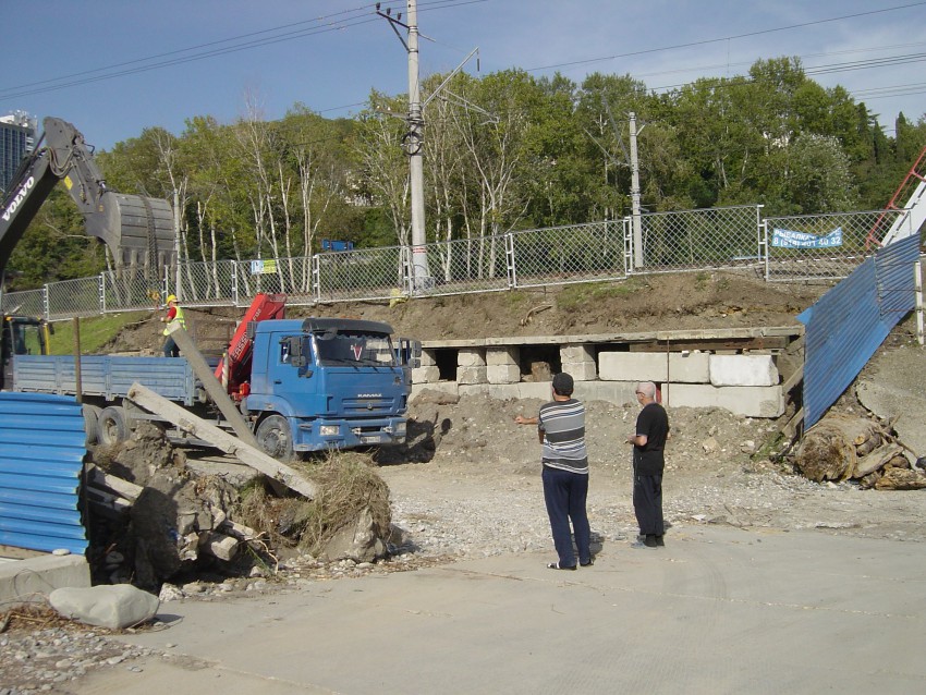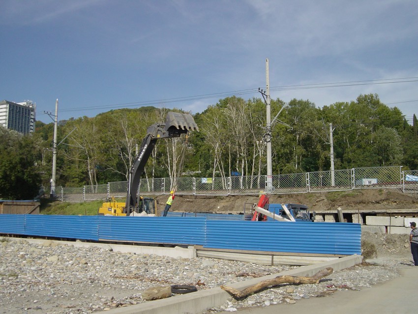 Сегодня на пляже появился очередной забор и экскаватор бодро монтирует фундамент на срытой железнодорожной насыпи, монтирует всё из старых демонтированных плит и блоков, кое-как поставленных без сварки и замоноличивания. Уклон насыпи урезали конкретно и вертикально. Видимо, после прошедшего циклона дожди уже горе-строителей не страшат. Паспорта объекта нет. Чем ЭТО станет в итоге, даже не могу предположить. Может, кто знает, что нас ждёт в новом сезоне и как с этим бороться?