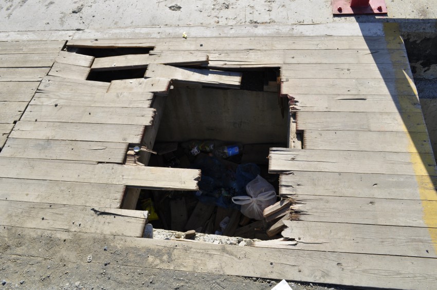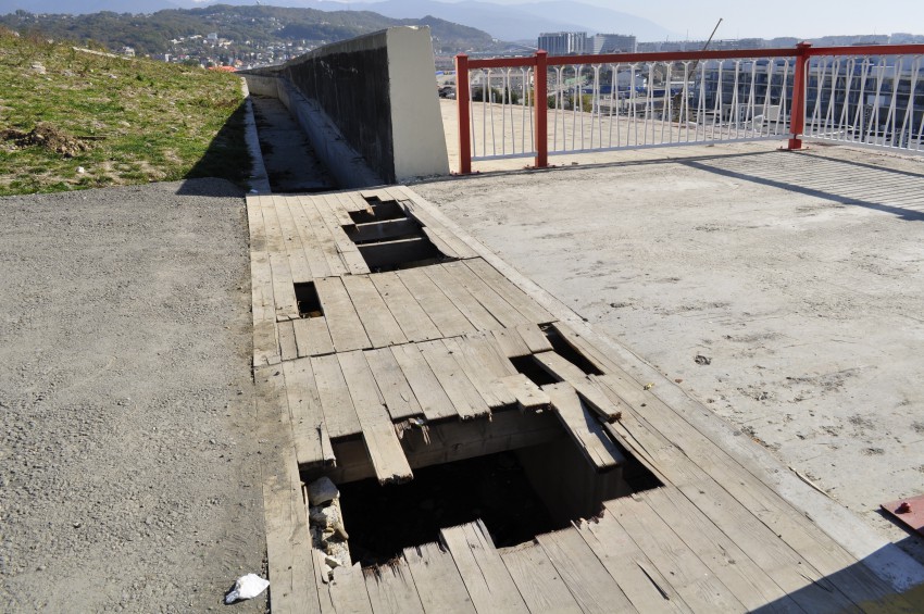 Нужно немного головой думать а не попой.Там же прекрасно видно что доски проломлены именно по колее легковой машины.Дебилы прямо на машинах туда заезжали.Доски были в прекрасном состоянии еще в июне.